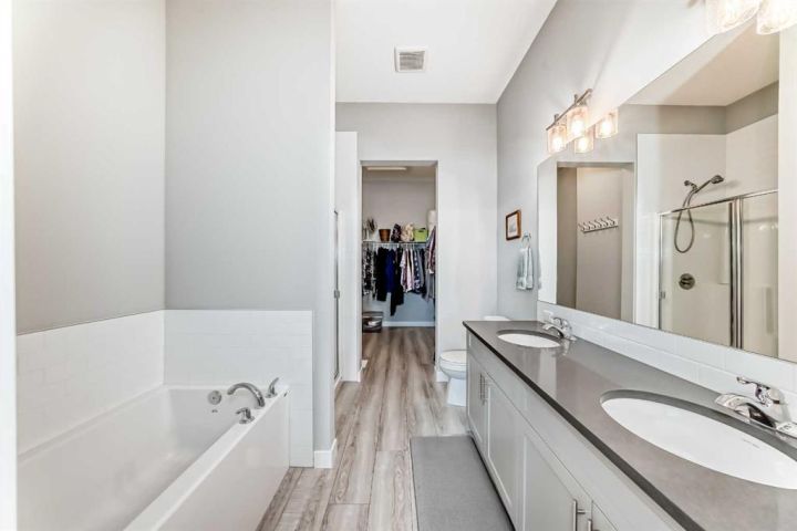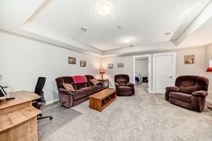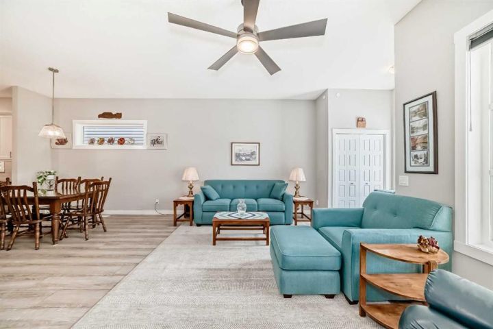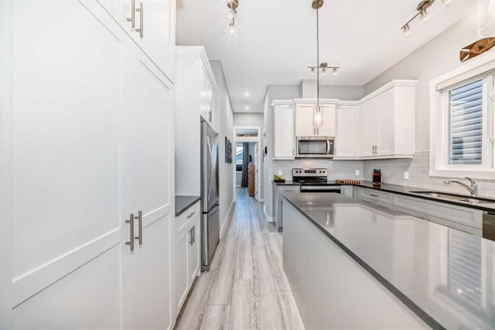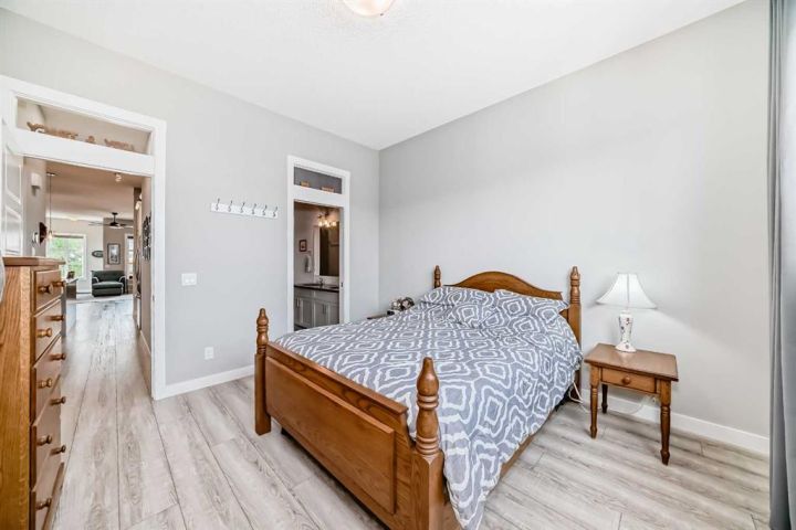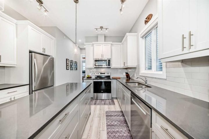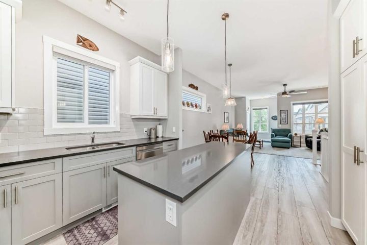 **WELCOME HOME!** Step inside this beautifully upgraded and meticulously maintained bungalow, where pride of ownership is immediately evident. Nestled in the highly desirable NW Livingston community, this immaculate 3-bedroom, 2.5-bathroom home combines modern elegance with everyday functionality. The exterior boasts durable *Hardie Board Siding* and *Class 4 shingles*, offering extra protection against hailstorms. Triple-pane windows and custom *Hunter Douglas blinds* add both style and energy efficiency, ensuring year-round comfort. Inside, the main level features soaring 10’ ceilings, luxury vinyl plank flooring, and an open-concept design that effortlessly connects the living room, dining area, and kitchen—creating a bright, airy space perfect for both entertaining and day-to-day living. At the heart of the home is the chef-inspired kitchen, complete with sleek two-toned cabinetry, gleaming *quartz countertops*, and a large central island. It’s fully equipped with stainless steel appliances, a microwave/hood fan combo, abundant cabinetry, and top-notch lighting that makes meal prep and gathering a true pleasure. The spacious primary bedroom is a private retreat, featuring a luxurious 5-piece ensuite with dual vanities, a deep soaker tub, and a walk-in closet. Large windows flood the room with natural light, enhancing the peaceful ambiance. A back boot room and laundry area, as well as a stylish 2-piece powder room, complete the main floor. The professionally developed lower level offers two additional bedrooms—each with walk-in closets—along with a modern 4-piece bathroom. High 9’ ceilings and a cozy family room with a gas fireplace provide the perfect place to unwind. Thoughtful lighting and plenty of storage make this space both functional and inviting. You'll also find a Heat Recovery Ventilator (HRV). A *double detached garage* (19'9"x19') offers ample parking and storage, and the property enjoys the convenience of a paved back alley. Located just minutes from Stoney Trail and Deerfoot Trail, this home offers quick access to downtown, shopping, entertainment, and more. Don’t miss the chance to make this dream home your own! **Call your favorite REALTOR® today to book your private showing!**