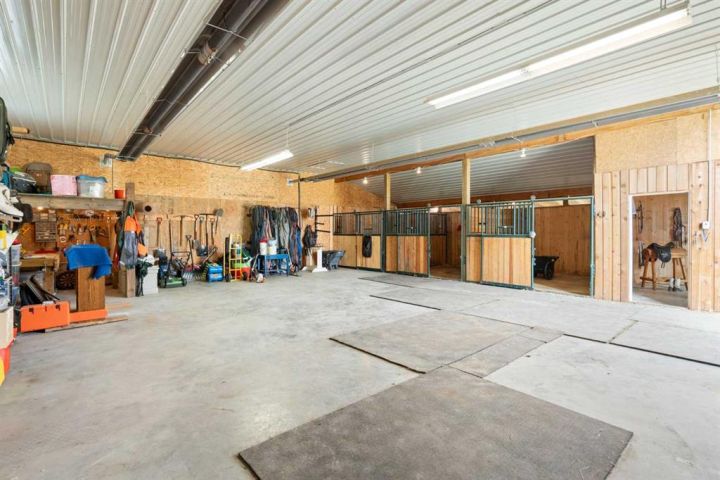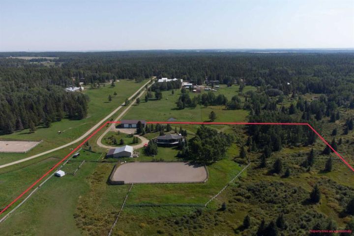 Just 35 Minutes from Cochrane ; 55 Minutes to the Rockies! Discover the perfect blend of natural beauty, privacy, and functionality in this incredible 23.4 acre ranch located northwest of Cochrane on scenic Grand Valley Road. Whether you're a horse enthusiast, outdoor adventurer, or a business owner needing shop space, this property offers an unparalleled lifestyle. This well-maintained bungalow has some wonderful features starting with 1,530 Sq Ft on the main level, a gorgeous living room and dining area, and 2 spacious main-floor bedrooms each with its own ensuite bathroom. An updated kitchen with a butcher block island and modern finishes and an additional full bathroom complete that level . You find a 3rd bedroom, family room, and bathroom in the fully developed walkout level for extra space. Enjoy the Expansive windows on both levels offering stunning panoramic views of the surrounding countryside and the fully developed walkout level, providing flexible living or entertainment space. The huge deck with custom awnings is just perfect for unwinding and enjoying the local wildlife. There are no shortage of EQUESTRIAN FACILITIES like a horse barn and riding arena. The heated 3 stall horse barn has a tack room along with room for feed storage and your tractor! Direct access to hundreds of acres of Crown land with world-class trail riding right at your doorstep. Fenced and cross-fenced areas ideal for horses or other livestock. There are other EXCEPTIONAL OUTBUILDINGS including a massive 40' x 80' shop/storage building with 12-foot doors—perfect for equipment storage, a mechanical business, or recreational use. A PRIME LOCATION AND ACCESS on paved route to the property on Grand Valley Road. Quick commute to Cochrane (35 mins) and only 55 minutes to the majestic Rocky Mountains. Surrounded by nature, with abundant wildlife and endless recreation opportunities. This is more than just a home, it's a gateway to a lifestyle of freedom, adventure, and possibility.