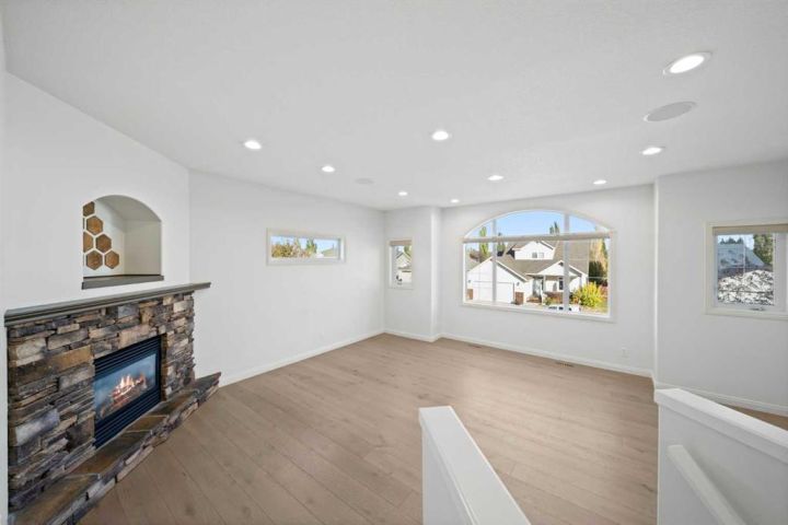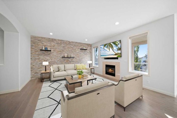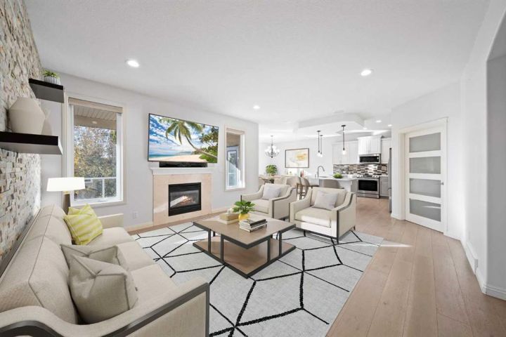 Experience modern luxury in this stunning home featuring 5 spacious bedrooms and 3.5 beautifully appointed bathrooms. The ensuite has 2 sinks and a separate shower. Entertain with ease in the expansive living areas, complete with a cozy fireplace, fully integrated sound system, and under slab heating for comfort year-round. Of course it also has central air conditioning for those hot summer days. The chef inspired kitchen boats a large island, perfect for gatherings, and flows seamlessly into the dining and living spaces as will as an upper deck just off the kitchen area. Step outside to your private backyard oasis, complete with a hot tub, fire pit, and terrace- ideal for relaxing and entertaining in any season. 2 washers and 2 dryers for your convenience. Also has underground sprinklers in the front and backyard. The home also features a modern triple car garage with a floor drain and remote access. Thoughtful details include window coverings throughout and elegant finishes that combine style and functionality. Every corner of this home has been designed with comfort, convenience, and modern living in mind.