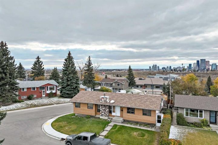 First time this family home has been on the market in 60 years! Beautifully maintained, freshly painted bungalow on a corner lot in a cul-de-sac featuring extensive woodwork, hardwood floors, and over 2,500 sq. ft. of total living space with separate furnaces for up and down. The main floor offers 4 spacious bedrooms, 2 full bathrooms, a dedicated office, and convenient main floor laundry as well as your southwest facing sunroom overlooking Calgary’s downtown skyline! The fully finished basement includes two separate entrances, massive living and rec areas, multiple flex/office spaces and great storage plus a full bathroom and rare indoor jacuzzi room. Enjoy outdoor living with a southwest-facing backyard and a rare rooftop patio boasting stunning downtown views. Irrigation system, recently built large deck for entertaining, fire pit and patio area, all next to a new oversized double detached garage. Excellent opportunity for families, investors, or those seeking multi-generational living. Close to schools, parks, shopping and more, this is a truly unique home with incredible potential!