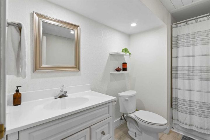3-BED | 2.5 BATH | 2,292 TOTAL SQ.FT. | FULLY RENOVATED | FINISHED BASEMENT | Welcome to this beautifully RENOVATED, modern farmhouse bungalow offering over 2,100 sq/ft of developed living space, nestled on a QUIET STREET in Tower Hill. The fully REMODELLED KITCHEN features quartz countertops, stainless steel appliances, a massive central island, and a custom hood fan. The open-concept layout connects the kitchen to the spacious dining area, perfect for hosting a large table. The bright living room is filled with NATURAL LIGHT from the impressive vaulted, floor-to-ceiling front window. Enjoy cozy nights by the WOOD-BURNING FIREPLACE, complete with a custom wood mantle and tile surround. The master bedroom easily fits a king-sized bed and includes a recently updated en-suite. The main level boasts WIDE PLANK HARDWOOD floors, while modern tile enhances the bathrooms. The FULLY FINISHED BASEMENT includes a renovated 4-piece bath, an office, AMPLE STORAGE, and a large entertainment room with a wet bar and second fridge. Other updates include a NEW HOT WATER TANK and NEW WASHER & DRYER. Outside, the recycled asphalt driveway leads to a large shaded deck and spacious backyard with a firepit, perfect for outdoor living. This home is within walking distance of the Rec Center, Splash Park, schools, and pathways, with easy access to Calgary’s main routes. This charming family home won't last long. Book a showing today before it's too late.