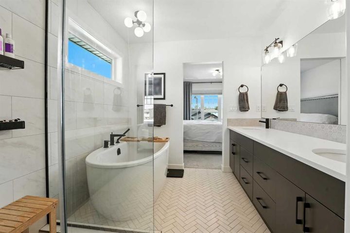 Welcome 84 Emmett Crescent, your family’s forever home in Evergreen – where upscale living meets everyday comfort. This beautifully designed 2-storey is tucked into one of Red Deer’s most desirable, family-friendly communities—surrounded by green spaces, walking trails, top-tier schools, and all the amenities you could need just minutes away. Inside, the layout is built with real life in mind: four spacious bedrooms all on the upper level—a rare and coveted feature for growing families. Whether it’s sleepovers, sibling hangouts, or simply giving everyone their own space, this home delivers. The heart of the home is the incredible kitchen—a dream for the family chef and ideal for gathering. Enjoy quartz countertops, upgraded appliances, a huge island for homework or snacks. The open-concept main floor is bright and airy, with 9’ ceilings, expansive windows, upgraded blinds, and a gas fireplace that makes it feel like home. Plus, central air conditioning keeps things perfectly comfortable year-round. Step outside onto your oversized NW-facing deck—partially covered so you can host BBQs, birthday parties, or quiet evenings under the stars, no matter the weather. The yard has been professionally landscaped with high-end trees and shrubs, not to mention the luxury limestone rock and gorgeous edging giving you the perfect space for kids to play and adults to relax and enjoy the most breathtaking sunsets. Upstairs, the primary suite is a serene retreat with a spa-like ensuite, soaker tub, and walk-in closet. The other three bedrooms are generously sized and perfectly positioned with an inviting bonus room for movie nights or toy-central, plus an upper-level laundry room where you actually need it! Talk about convenience. The basement is a blank canvas with room for another bedroom, bathroom, and large family zone. Enjoy the comfort of a heated garage, you’ll love stepping into a warm vehicle on those cold Alberta mornings. Evergreen is more than a neighborhood—it’s a lifestyle. Bring your family home! *Upgrades include: Central Air Conditioning, Heated Garage, Automatic Blinds in Living Room, Gas Fireplace, Professionally Landscaped, Luxury Lime Stone Rock, Edging, Paved Alley, Pantry, Privacy Blinds on the Covered Deck, Vinyl Fence.
