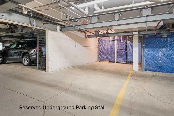 This freshly painted, well maintained ground-floor unit offers 991 sqft of bright, functional living space in the highly sought-after Dana Village, a 55+ community that is well managed to support an active and fulfilling lifestyle. This ground-floor unit faces the quiet interior courtyard, offering a stunning view and allowing you peaceful enjoyment from your private patio. Your move-in-ready home has freshly shampooed carpets throughout, top-down blinds that provide privacy while still allowing plenty of natural light, and central A/C to keep things comfortable year round. Step into the open-concept kitchen and discover, laminate countertops, generous cupboard space, and a full pantry. The layout is open and flows from the kitchen to the dining and living areas. This unit features two generously sized bedrooms, including a primary suite with a private 4-piece ensuite, with double walk-through closets, as well as a 3-piece guest bathroom and the convenience of in-suite laundry with extra storage. You’ll also appreciate the central vacuum system, an added touch of convenience. This unit boasts one of the largest underground parking stalls in the entire complex; complete with an oversized storage locker and motion-sensor lighting. As a resident of Dana Village, you’ll enjoy access to an array of amenities including a fitness centre, games area with a pool table, woodworking shop, and beautifully landscaped grounds. And you can’t forget about the private car wash—an exclusive perk that keeps your vehicle looking its best year-round. Located on the main floor, this unit is dog- or cat-friendly (one pet permitted per condo bylaws). This welcoming community offers a vibrant calendar of clubs and social events designed to keep you engaged and connected. Ideally located within walking distance to the LRT, scenic walking paths, parks, shopping, and dining—everything you need is right at your doorstep. Don’t miss your opportunity to own this ideally located, pet-friendly unit in one of the best 55+ communities in the area. Check out the 3D tour and book your private showing today!