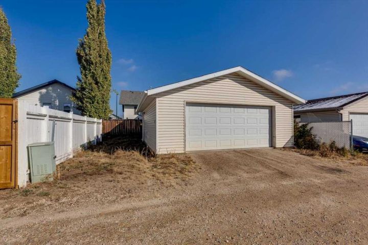 This is a charming home that has 5 bedrooms, 2 full bathrooms and a huge detached garage. Open and airy kitchen with an island. South facing backyard with a covered deck so you can BBQ all year round! Within walking distance to a school and playgrounds for your convenience. This neighbourhood is quiet and located on a close.