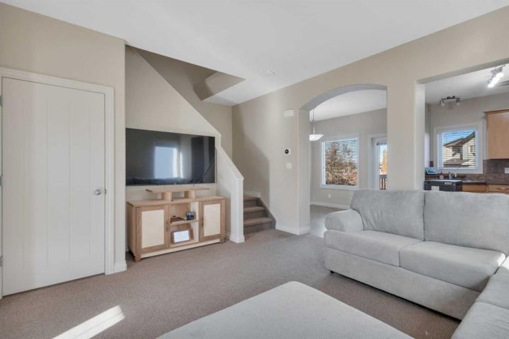 Visit REALTOR® website for additional information. Step inside this stylish 2-storey duplex and feel right at home. With no condo fees, an attached garage, and a completely redone front porch, this property offers great value and low-maintenance living. The main floor features an open-concept layout with a bright living area, modern kitchen with breakfast bar, black appliances, tile backsplash, and a pantry. The adjoining dining area opens to the deck with a gas line, and a fenced backyard —perfect for barbecues and outdoor relaxation. A convenient 2-piece bath completes the main level. Upstairs, find three comfortable bedrooms and a 4-piece bathroom. The primary bedroom has a walk-in closet. The fully finished basement adds even more space with a cozy rec room, fourth bedroom with a walk-in closet, another full bathroom, plus storage and laundry areas. Nestled in a quiet, family-friendly close, this home is close to walking trails, parks, and playgrounds—an ideal choice for families, first-time buyers, or anyone looking for a clean, move-in-ready home with modern comfort and style.