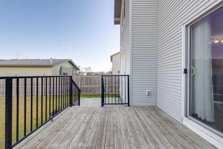 IMPRESSIVE 3 BEDROOM, 3 BATHROOM HOME – SHOWS VERY NICELY! Welcome to this beautiful 1,528 sq. ft. two-storey home, perfectly located on a desirable crescent. From the moment you walk in, you’ll be impressed by the bright, spacious living room featuring a stylish gas fireplace — perfect for cozy evenings. The gorgeous kitchen offers a large granite island, a walk-in pantry, and plenty of rich dark cabinetry, ideal for those who love to cook and entertain. The adjoining dining area opens directly onto the rear deck and fully fenced yard, creating an effortless indoor-outdoor flow. A convenient 2-piece bathroom completes the main level. Upstairs, you’ll find three generous bedrooms, including a primary suite with a walk-in closet and a full 4-piece ensuite. The upper level also features a second 4-piece main bathroom and the added convenience of laundry upstairs. The insulated and drywalled front-attached garage provides both comfort and functionality. This home is modern, immaculate, and move-in ready — a wonderful place for your family to call home!