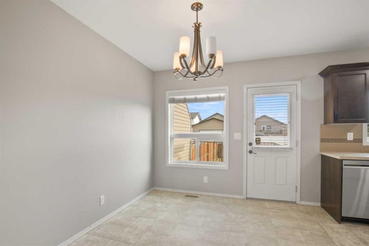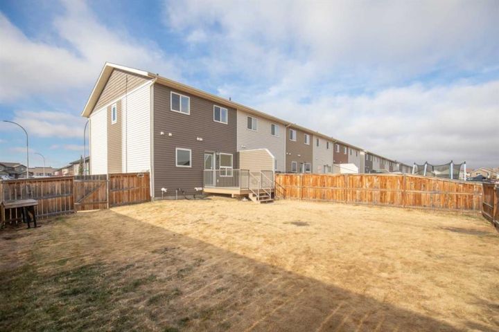 Immaculate end unit townhouse, with the largest yard of all of these townhouses! Built by True-Line Homes, this home was built with quality and pride, all of the final touches have been done to make this home move in ready!. 3 bedrooms, 3 baths it features a gorgeous kitchen, large living area, Large Primary Bedrooms with Walk in Closet and 3 Piece ensuite!. This home has the largest yard of the entire street of townhouses! - Room for a Double Garage!! Fully fenced with large deck and backs onto a back alley leading to the parks, walking paths and more. In One of the best Blackfalds Communities!