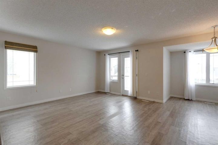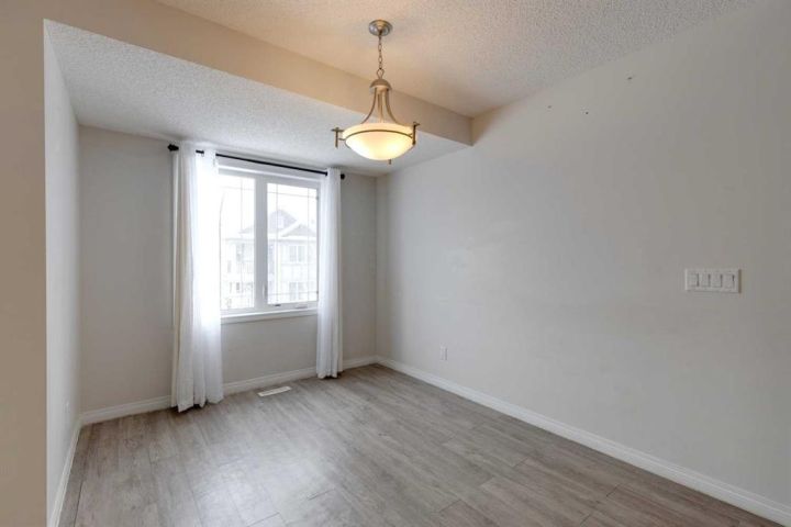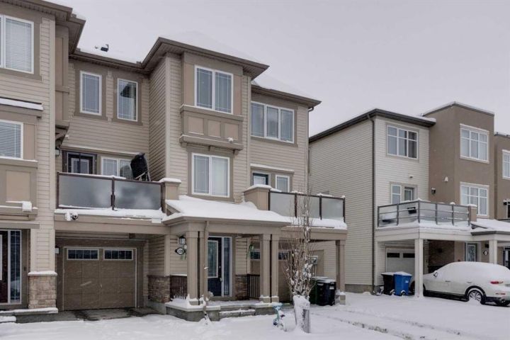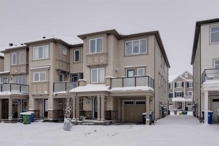 Welcome to this bright and inviting end-unit townhome in the heart of Cityscape, perfectly positioned steps from parks, green space, sports fields, and scenic walking paths. With shops, restaurants, daycares, schools, and quick access to Stoney Trail all close by, this location blends everyday convenience with a great family-friendly atmosphere. Thoughtfully designed across three levels, the home opens with a spacious front foyer, interior garage access, and a dedicated laundry room, keeping daily living organized and practical. Upstairs, the main floor features a sunny open-concept layout with a well-appointed kitchen offering a centre island with bar seating and a window over the sink for extra natural light. The kitchen overlooks the comfortable living room, where sliding doors lead to a private balcony, perfect for morning coffee or evening BBQs. A generous dining area and a convenient 2-piece bathroom complete this level. The top floor hosts a large primary bedroom with direct access to the 4-piece main bathroom, plus two additional bedrooms ideal for children, guests, or a home office. Additional features include an attached single garage with driveway parking, end-unit privacy with only one common wall, and low-maintenance living in a thriving community. This is a fantastic opportunity to own a 3-bedroom end-unit townhome in a vibrant and growing Northeast neighbourhood. Move-in ready and waiting for its next chapter, don’t miss it!