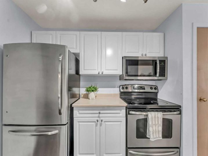 Welcome to #101 – 245 Red Deer Dr SW, a comfortable and conveniently located condo in Riverview Terrace. This apartment-style home offers easy living with quick access to the hospital, Hwy 1, and River Heights School. The building has no age restrictions, pets are welcome (with some limits), and there’s a playground and greenspace right next door. This ground-floor unit is a standout with its private patio-door entrance—just steps from your assigned parking stall. Inside, you’ll find a good-sized living room with plenty of natural light, opening directly to the dining area for an easy, open feel. The kitchen features white cabinetry paired with stainless steel appliances. Both bedrooms are impressively large and come with walk-in closets. One bedroom includes its own 4-piece ensuite, while the second sits right beside the updated main 4-piece bathroom, making this an ideal setup for roommates, guests, or a small family. The unit also offers in-suite laundry with stacked washer/dryer and a generous storage room. Condo fees are $691.56/month and cover common area maintenance, electricity, heat, grounds upkeep, professional management, reserve fund contributions, sewer, snow removal, trash, and water.