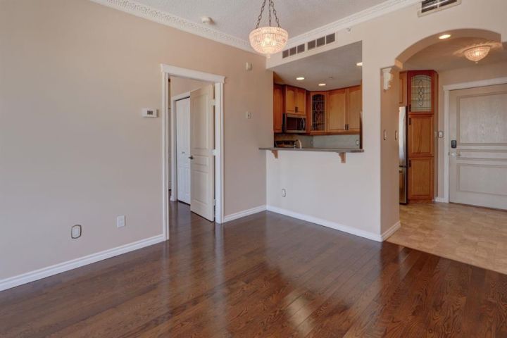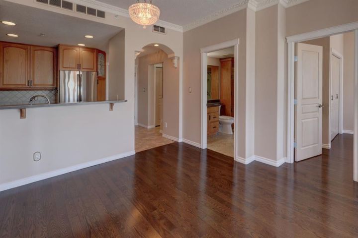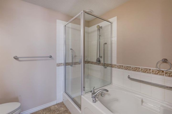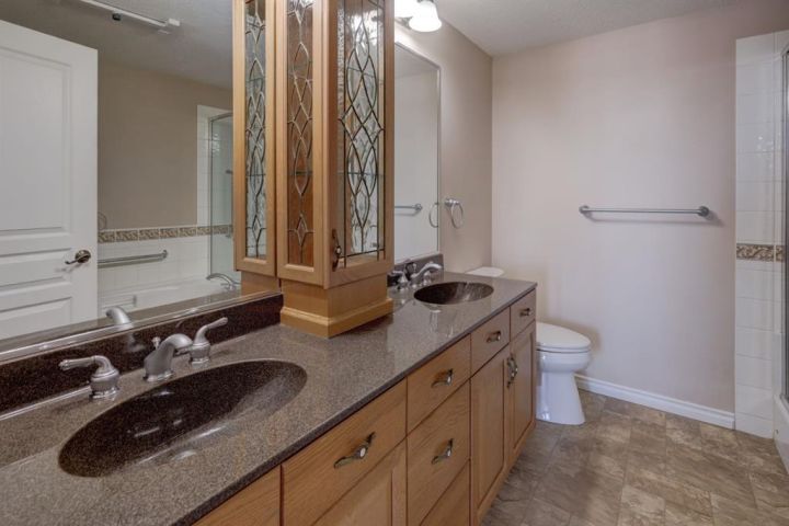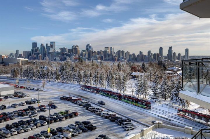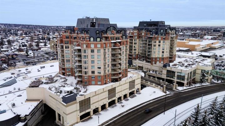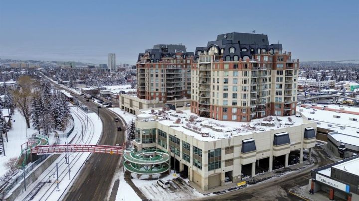 Welcome to the East Tower of the Renaissance 18+ condominium complex! This 2-bedroom, 2-bathroom condo has a very homey feel with hardwood floors, oak cabinets and a gas fireplace. The kitchen has stainless steel appliances, plenty of countertop area, and a cutout window that allows natural light into the kitchen from the large east facing living room windows and balcony door! There is a den conveniently located at the front door that has a coat closet. The living room and dining room areas have a bright and open concept. The spacious primary bedroom has access to the balcony that has an unobstructed view to the east. The 5-piece ensuite has a deep soaker tub, and a separate shower. A second bedroom offers private access to the 4-piece main bathroom with a stacked washer and dryer. This home also includes one titled, heated underground parking stall. The assigned storage unit is located on the main floor. Residents of the Renaissance enjoy exclusive access to amenities, including a 24 hour concierge, fitness centre, games and craft rooms, a movie theatre, meeting room, outdoor terrace, and guest suite. There is an elevator with direct indoor access to North Hill Shopping Centre. The Lions Park C -Train station is nearby. Easy access to downtown, SAIT, Jubilee Auditorium, and 16th Ave. Call your favourite Realtor to view this lovely property. Click on the 3D symbol at the top of the listing page to view the entre virtual tour.