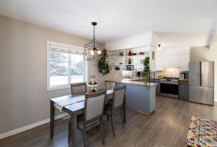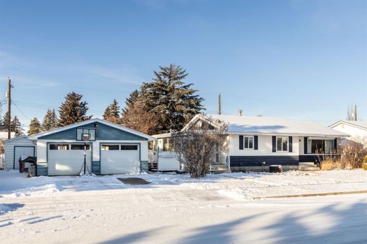 Welcome to this fully finished bungalow in the heart of Blackfalds — a spacious and versatile home set on a large double lot with plenty of room to grow. Offering 5 bedrooms and 2 full bathrooms, this property features 3 bedrooms on the main floor and additional space downstairs, making it perfect for families of all sizes or those needing flexible living arrangements. Inside, you’ll find a bright and generous living room, an inviting space to gather and relax. The home has seen some updates throughout, while still leaving the next owner the opportunity to add their personal touches and build equity. A unique highlight of this home is the sunroom on the south side, providing an extra cozy space to enjoy year-round natural light — perfect for plants, morning coffee, or quiet afternoons. Downstairs, you’ll find even more living space, including an additional primary-sized bedroom, giving you options for guests, or a private retreat. Outside, the fully fenced yard offers tons of room for kids, pets, and outdoor projects, while the detached heated garage provides comfort and convenience through all Alberta seasons. Located centrally in Blackfalds, this home puts parks, schools, and amenities within easy reach — a fantastic opportunity for those looking for space, flexibility, and a property with great potential.