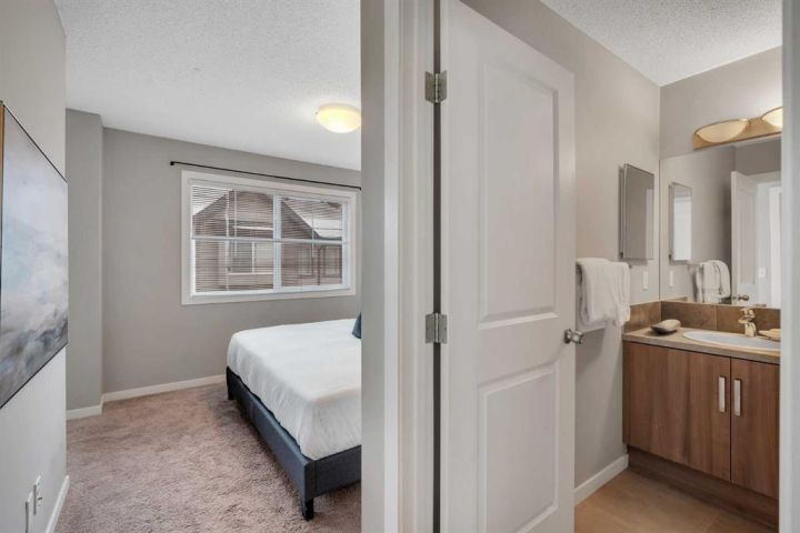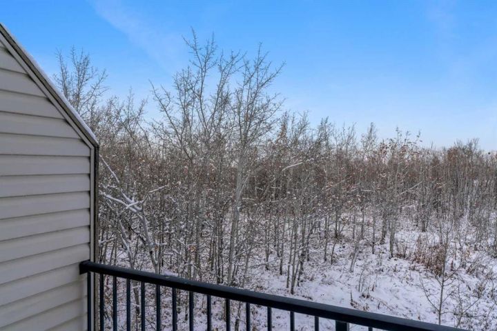 **MOVE IN READY - BACKING GREEN SPACE - DOUBLE PRIMARY SUITES** Discover this immaculate townhome perfectly situated in a quiet location, backing onto beautiful green space with panoramic views. Flooded with natural light, the home features large windows throughout and a bright, open-concept layout. The spacious kitchen offers sleek modern cabinetry, contemporary countertops, a stylish backsplash, updated stainless-steel and black appliances, plenty of storage, and workspace. Imagine enjoying your morning coffee on your private balcony overlooking the expansive green space, watching the wildlife. An inviting dining area flows into a large Great Room—ideal for both everyday living and entertaining. Upstairs, you’ll find two generous bedrooms, each with its own ensuite bath and walk-in closet, along with the convenience of upper-floor laundry. Additional highlights include a double attached tandem garage and LOW MONTHLY CONDO FEES. Plenty of monitored visitor parking is available. Close to schools, shopping, and recreation, with easy access to major transportation routes, this home delivers comfort, style, and an unbeatable location. City living with a country feel!