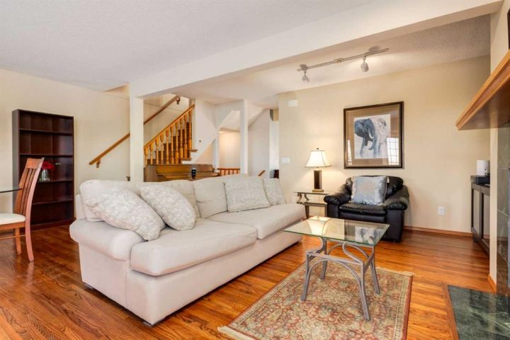 Perched on top of Broadcast Hill in Patterson, this amazing townhouse overlooks the city, and the view is hard to beat! At 1460ft2, this freshly painted end unit has 3 bedrooms, 2.5 bathrooms, a wrap-around front balcony with city view, a rear composite deck with no neighbours behind and a huge double-attached, tandem, heated garage! The interior features new stainless-steel appliances, heated floors in the kitchen, immaculate hardwood on the main, and a gas fireplace. The kitchen is a great size, and the laundry is conveniently situated on the main level. Upstairs you’ll find the primary bedroom, with a 4-pc ensuite bathroom and more city views! The other 2 bedrooms are good sized and could be used for kids, guests or as an office. The mechanical is all up to date as well, with a new Central A/C unit and a high efficient furnace, you can focus on getting the aesthetics exactly how you want them. The home is tucked away, you’ll have no traffic coming by your front door, and the privacy of being on the edge of the complex siding onto walking paths and open space in front and behind the unit. Patterson is such a great location with quick access to Stoney Trail and Downtown, it’s another reason why west is best, and we’d love to accommodate your showing needs. Book to come see it today, you’ll be glad you did.