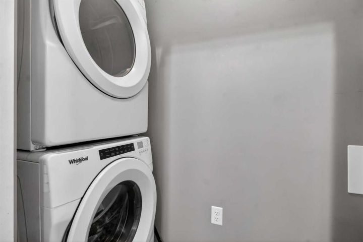 Dishwasher, Electric Stove, Microwave, Microwave Hood Fan, Refrigerator, Washer/Dryer Stacked, Window Coverings
