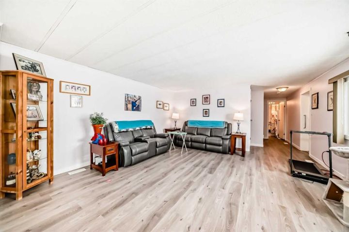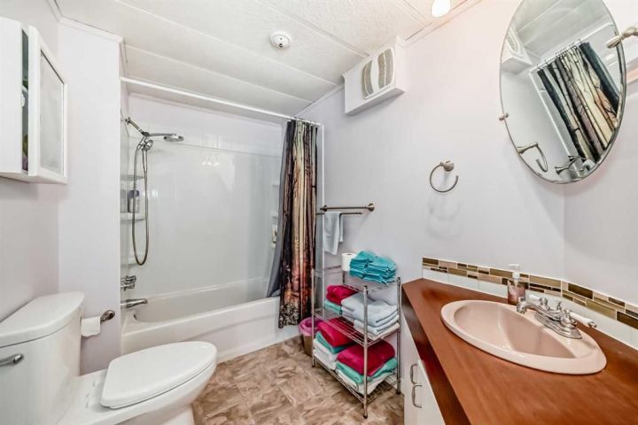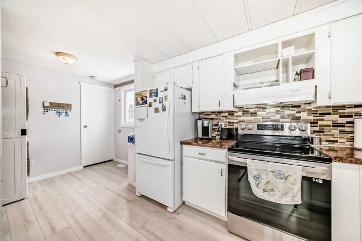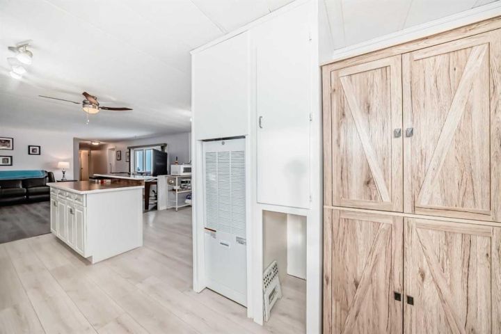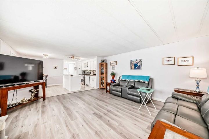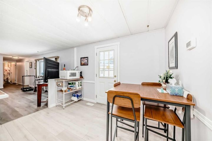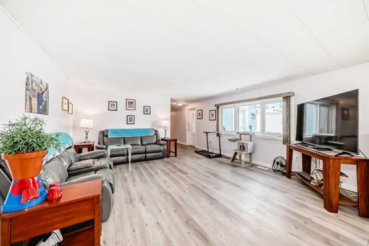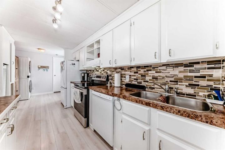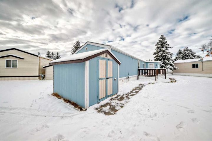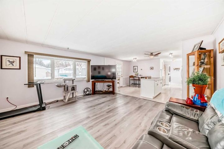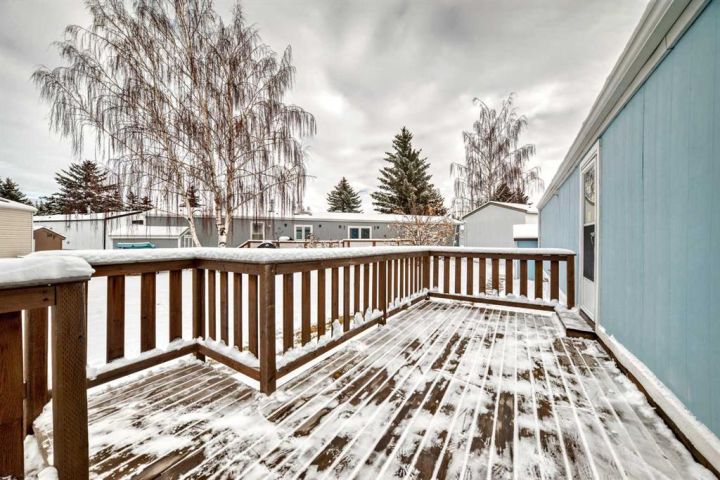 Nicely updated 2 bed/2 bath home in one of the best managed adult (16+) mobile home communities in Calgary. The main entrance into home is through a heated addition that is large enough to be a craft room or den. As you enter the home, you will enjoy how open and bright the main living area is. The kitchen is well thought out to maximize cooking and prep in a compact area. Both bedrooms are large enough for king size furniture and, being at opposite ends of the home, provide plenty of privacy. A large deck off the dining room makes summer BBQs convenient. Updates include furnace (2024), stacking washer/dryer (2024), new blinds, flooring and freshly painted. Parkridge Estates is an adult (16+) community with a clubhouse and very active social committee. Activities include jam sessions, coffee meetings, pub nights, crafter circle and dinner dances. Lot fee is $820/month which includes landscaping, snow removal, waste and recycling. There is also a mandatory $25/year association fee. Pet restrictions are 2 pets per home; dogs must be less than 15 inches at the shoulder when fully grown. The community backs onto the Monterey Park regional pathway and has easy access to Stoney Trail and 16th Avenue making it easy to get almost anywhere in the city.