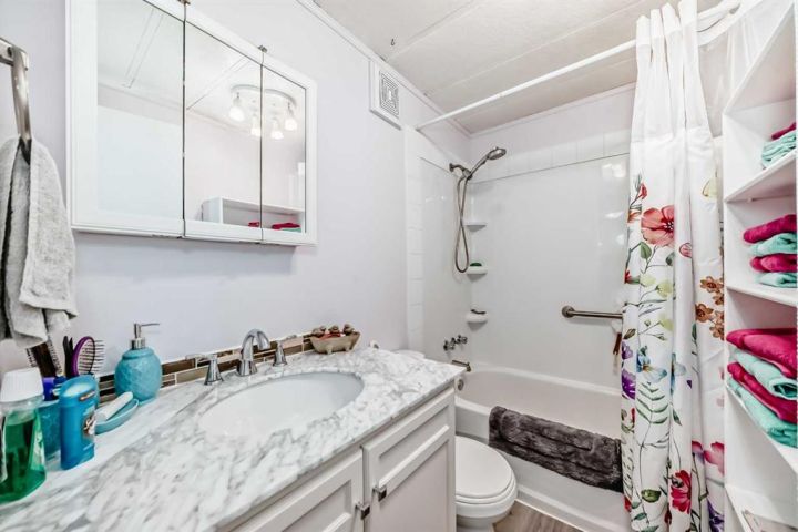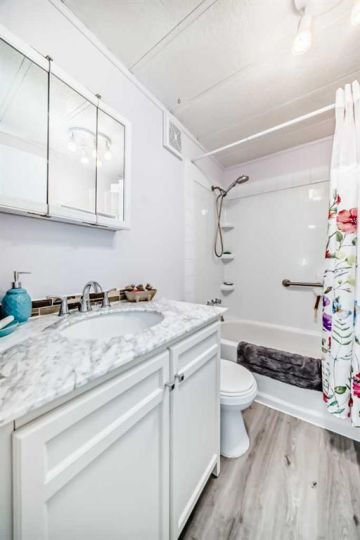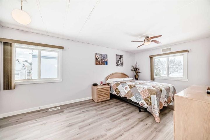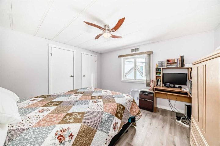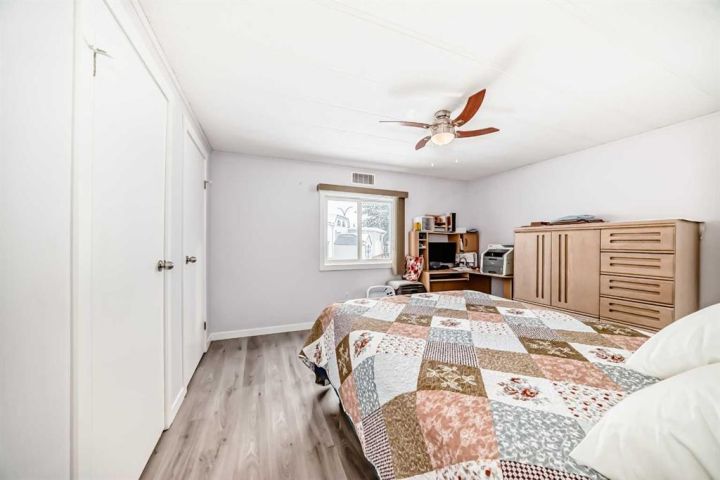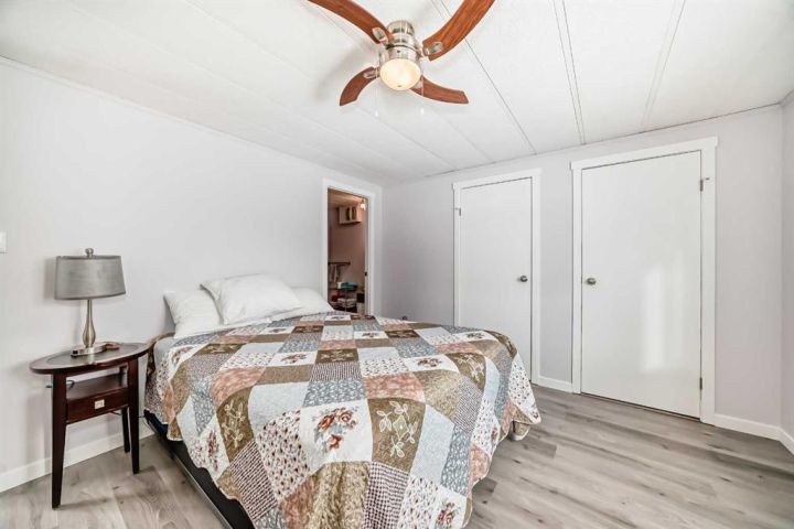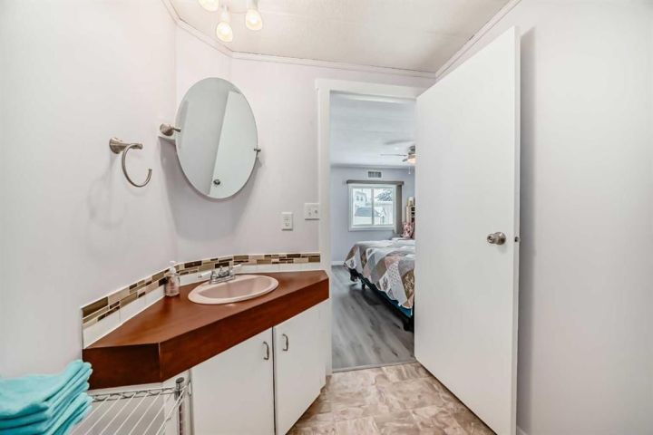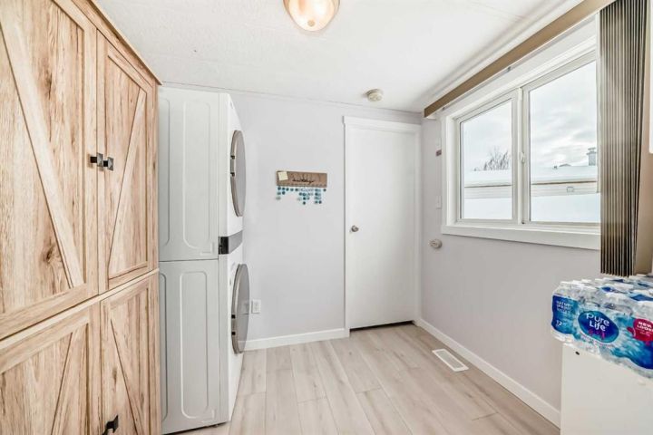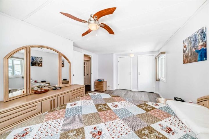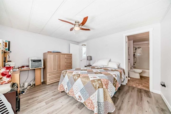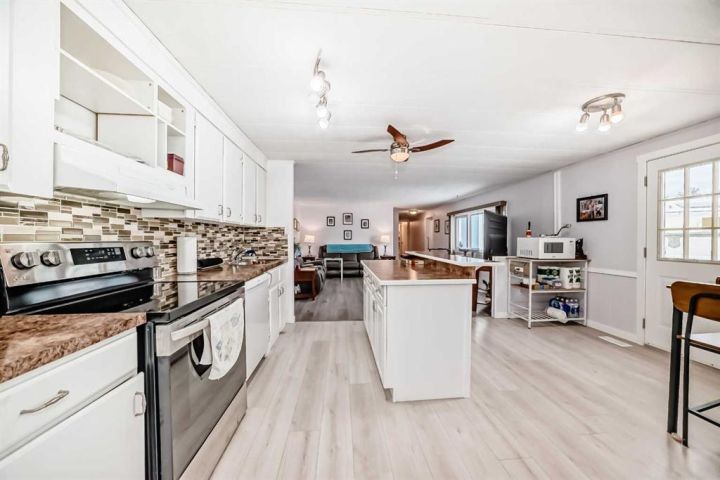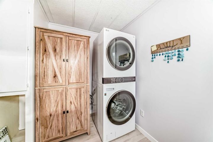 Nicely updated 2 bed/2 bath home in one of the best managed adult (16+) mobile home communities in Calgary. The main entrance into home is through a heated addition that is large enough to be a craft room or den. As you enter the home, you will enjoy how open and bright the main living area is. The kitchen is well thought out to maximize cooking and prep in a compact area. Both bedrooms are large enough for king size furniture and, being at opposite ends of the home, provide plenty of privacy. A large deck off the dining room makes summer BBQs convenient. Updates include furnace (2024), stacking washer/dryer (2024), new blinds, flooring and freshly painted. Parkridge Estates is an adult (16+) community with a clubhouse and very active social committee. Activities include jam sessions, coffee meetings, pub nights, crafter circle and dinner dances. Lot fee is $820/month which includes landscaping, snow removal, waste and recycling. There is also a mandatory $25/year association fee. Pet restrictions are 2 pets per home; dogs must be less than 15 inches at the shoulder when fully grown. The community backs onto the Monterey Park regional pathway and has easy access to Stoney Trail and 16th Avenue making it easy to get almost anywhere in the city.