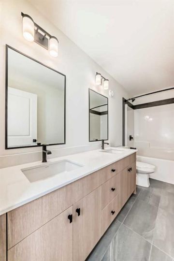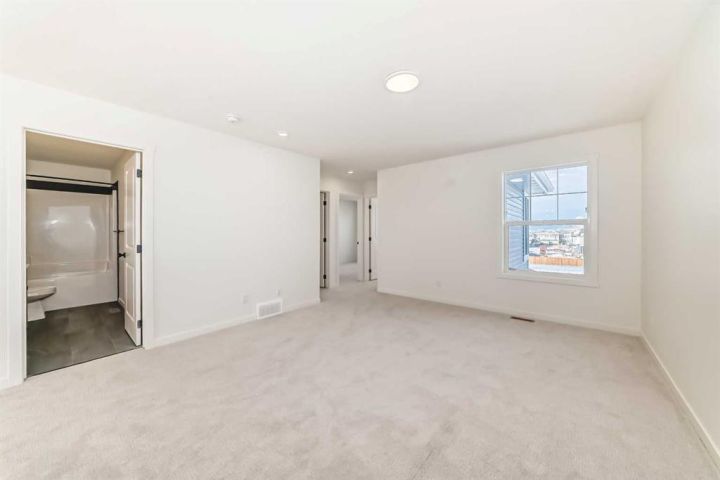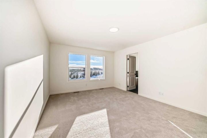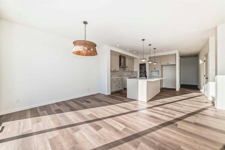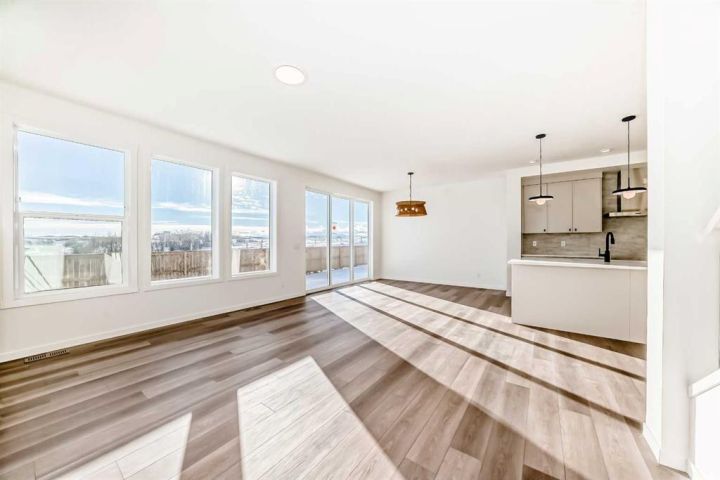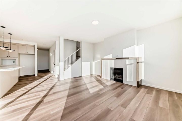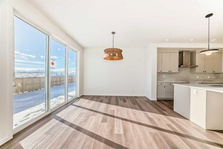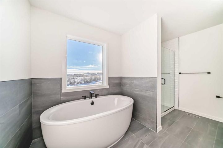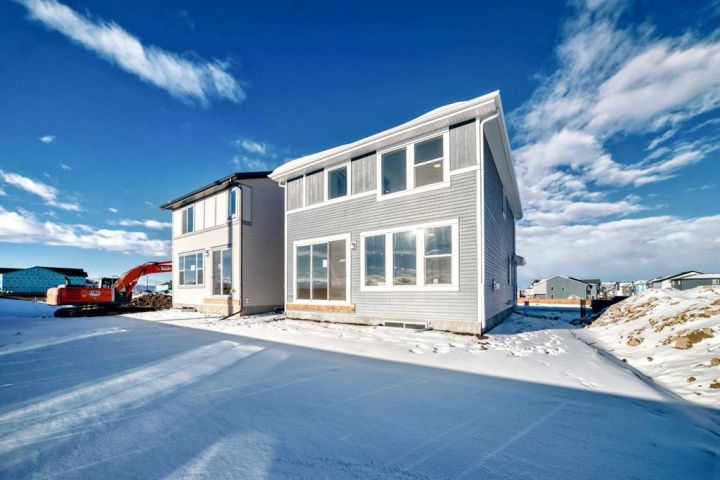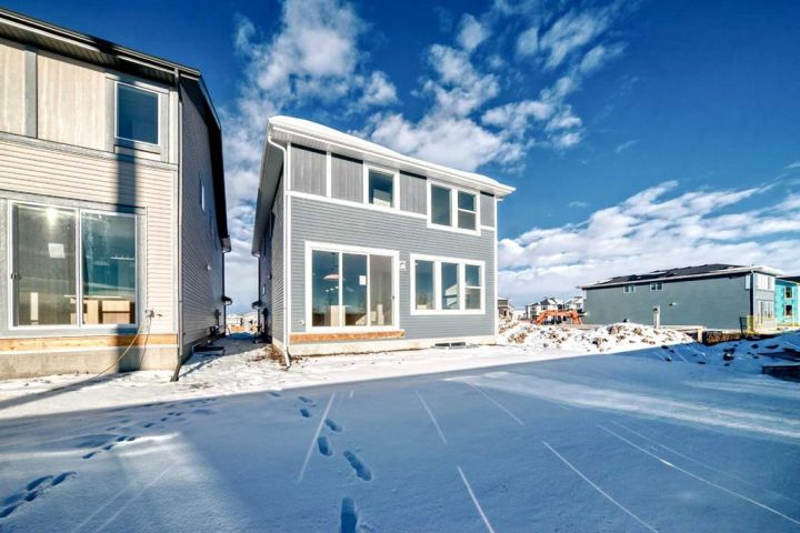 Move in today. This brand-new Sierra R by Daytona Homes delivers 2350 square feet of finished living space with a smart, functional layout that actually works for families. The main floor opens with a bright foyer and front den, ideal for a private office or quiet flex space. The kitchen is clean, modern, and efficient, finished with a central island, upgraded lighting package, and a walk-through pantry that keeps clutter out of sight. It flows directly into the dining nook and great room, where oversized windows and a gas fireplace create a warm, open main living zone buyers want. Upstairs, the layout hits every need. The primary suite is large and well-designed with a walk-in closet and a polished ensuite featuring a freestanding tub, walk-in shower, dual vanities, and contemporary finishes. Three additional bedrooms, a full bathroom, second-floor laundry, and a bonus room complete the upper floor, giving families the space separation they rely on day to day. The unfinished basement features a 9-foot foundation height and a practical layout ready for future development. The exterior shows strong curb appeal with a modern farmhouse elevation, smartboard detailing, stone accents, and a full double attached garage. Located in Southbow Landing, Cochrane’s fast-growing community, this home offers quick access to future parks, walkways, local amenities, and the Bow River. With today’s clean modern finishes, brand-new systems, and immediate occupancy, this is a turnkey opportunity in a community built for long-term value.