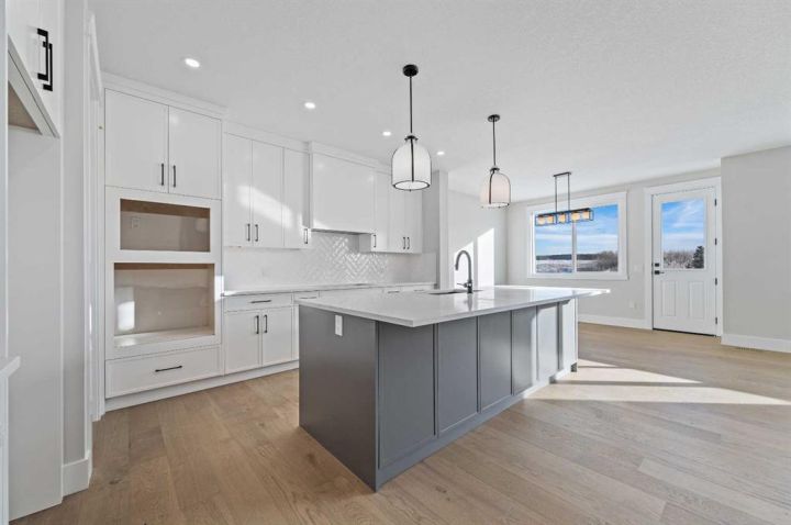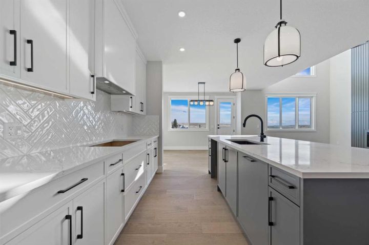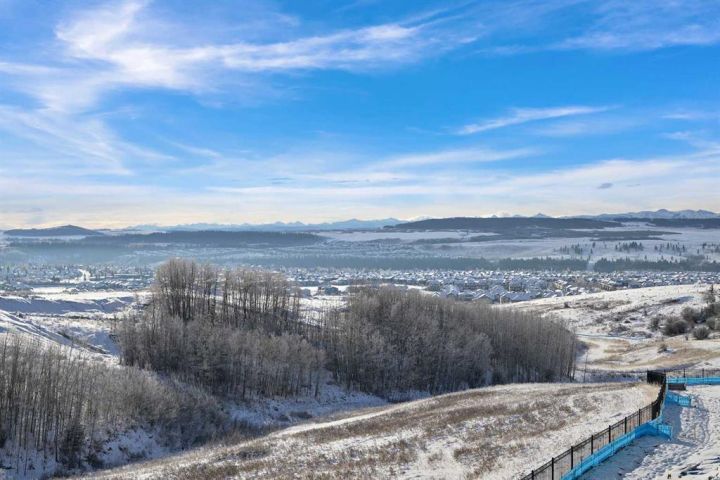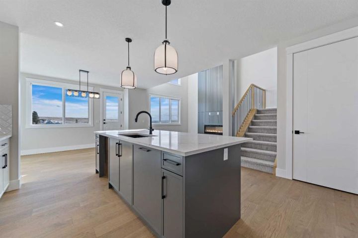 Ridge Lot With Amazing Views...Situated in the desirable community of West Hawk. This home is thoughtfully designed and comes with with 3 bedrooms and 2.5 bathrooms. The main floor features an open-concept layout with soaring open-to-above ceilings, a striking Linear fireplace Design, and a private home office with Wainscoting. The chef’s kitchen showcases custom soft-close cabinetry with hidden doors behind the island, quartz countertops, Samsung stainless steel appliances, a walkthrough pantry, and under-cabinet lighting. A mudroom adds everyday convenience. Upstairs, the master retreat impresses with mountain views, a walk-in closet, and a spa-inspired ensuite with dual sinks, a 10mm glass shower, soaker tub, upgraded mirrors, and imported tiles. A spacious bonus room and laundry area provide added functionality. Additional highlights include 8-ft doors on the main floor, custom built-in closets, engineered hardwood, 9-ft ceilings on both levels, upgraded lighting, plumbing fixtures, and a double-car garage. The walkout basement has Roughed in Bathroom plumbing and ready for your future Development. Enjoy West Hawk’s prime location near parks, future dog park, bike paths, shopping, and quick mountain access. This home also includes a Certified New Home Warranty for peace of mind. Don’t miss this rare opportunity—book your private viewing today!