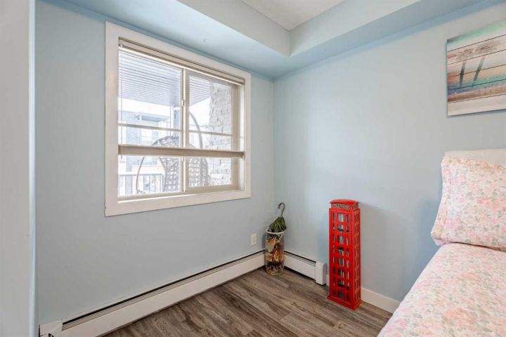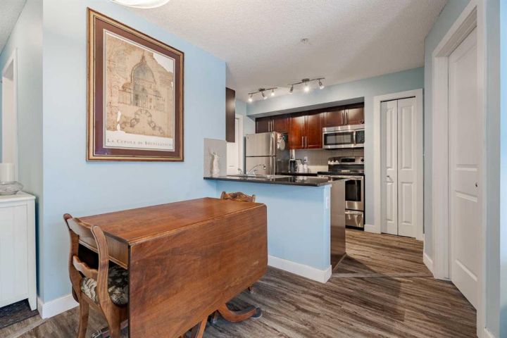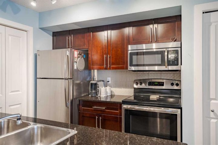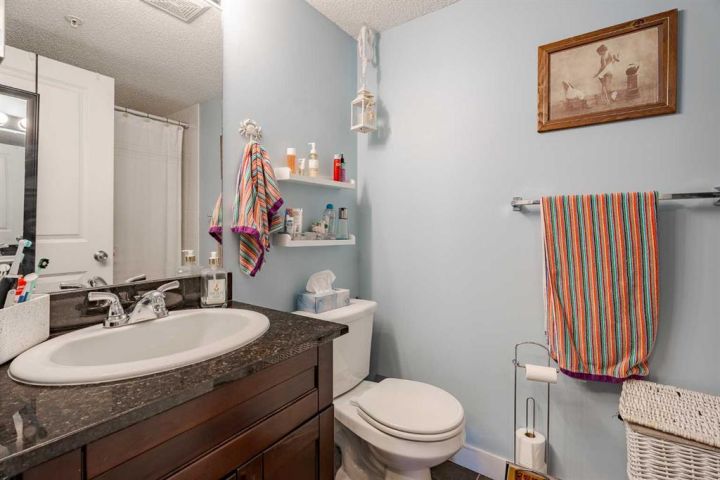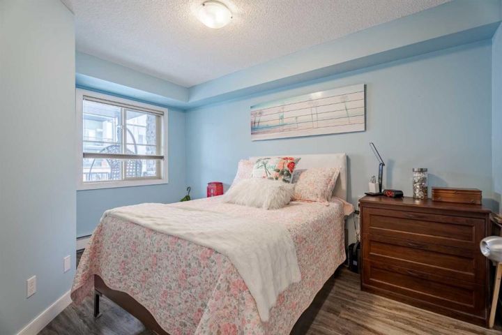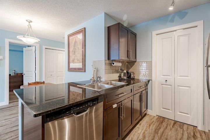 Welcome home to this bright and spacious 2-bedroom, 2-bathroom unit featuring an open-concept layout and a desirable third-floor location. With its sunny south exposure, the home is filled with an abundance of natural light throughout the day. The well-appointed kitchen offers granite countertops, a walk-in pantry, and ample workspace. The combined living and dining area provides a comfortable setting for everyday living and entertaining, with direct access to the sunny south-facing balcony. The primary bedroom includes a walk-through closet and a full ensuite with granite counters. The secondary bedroom is ideal for guests, a roommate, a home office, or a creative space. A full 4-piece bathroom and convenient in-suite laundry complete the floor plan. Beautiful upgraded vinyl plank flooring runs throughout the unit. This home also comes with a titled underground parking stall. Centrally located and adjacent to a playground, the property offers excellent proximity to schools, downtown, shopping, restaurants, and countless amenities—plus great access to major routes, making it easy to get anywhere in the city. Whether you’re a first-time buyer or investor, this property offers exceptional value. A wonderful place to call home!