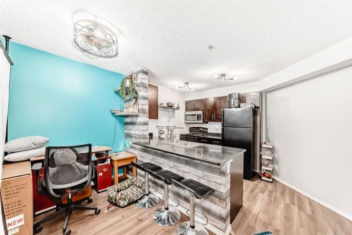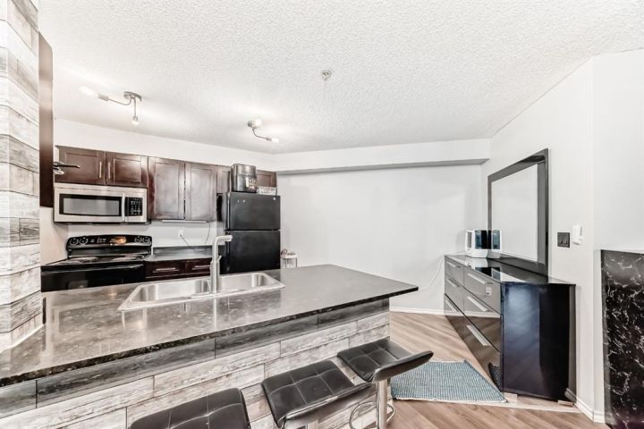 Incredible opportunity for first-time buyers, investors, or those looking to downsize. This charming 1-bedroom, 1 bathroom unit featuring an open concept layout and low condo fees. Upon entering the clean and spacious home, you are greeted by a large double closet, a primary bedroom and a bathroom. A large double closet provides all the space you need for your wardrobe and occasional items while further maximizing the livable area. The kitchen features rich espresso cabinets, granite counters, a breakfast bar and a functional layout that flows seamlessly into the living and dining area perfect for everyday living or casual entertaining. Large windows fill the space with natural light. You’ll also appreciate the convenience of an in-suite laundry and smart use of space throughout. The home also includes a titled underground parking. Enjoy not having to shovel or plug in your vehicle with the underground parking. Taradale is known for its family friendly atmosphere, diversity, convenience, and growing amenities, making it a highly desirable place to call home. Situated close to shopping areas, schools, transit and walking paths, this condo blends lifestyle and location. Call your favourite realtor and book your showing.