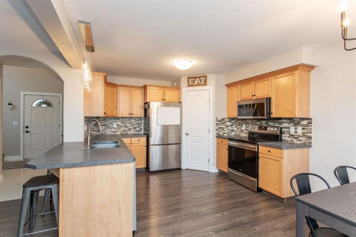 WEST FACING YARD | OPEN CONCEPT | ATTACHED GARAGE | Step inside this welcoming two-storey home and be greeted by a large FRONT ENTRY way with a coat closet, the main floor features a spacious living room with west-facing windows that capture light till the sun sets. The kitchen offers tons of counter space, PANTRY and plenty of storage. With newer stainless steel appliances for an added bonus. A convenient powder bath and LAUNDRY ROOM right by the garage door makes it an easy to use home. The home is equipped with CENTRAL AC for year-round comfort. The lower level is nearly finished, just a few final touches needed to add additional value and living space. A bathroom, a den and roughed in wet bar complete the basement. Upstairs you’ll find two additional bedrooms, a great sized primary bedroom, a full bathroom, and a PRIVATE ENSUITE for the primary suite. A wonderful layout for families and busy lifestyles. Entering into the backyard is your own personal oasis, with west facing sunsets you can enjoy the yard all the time. A double tiered deck for hosting is a great addition. Finishing off the large yard is a gravel pad for RV PARKING. For added peace of mind the roof had SHINGLES (2024) replaced, HOT WATER TANK (2021) replaced, stacked WASHER AND DRYER (2025) replaced. Truly a standout home in both design and location, you won’t find another like it. AMENITIES within 5 min of home: Abbey Centre (OUTDOOR POOL), Eagles Builder Centre (Home Of Local BCHL Team), Ball Park, Mountain Bike Park, Gas Station, HIGHWAY 2, Grocery stores (1 min)... Don't miss out on this property!