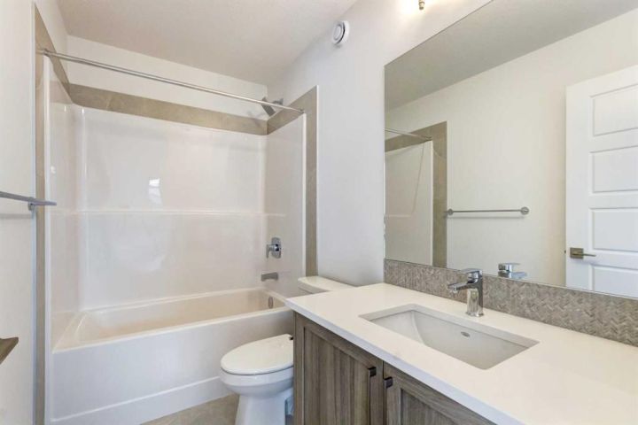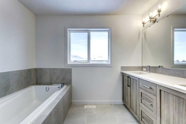 Introducing the Stanley—a stunning BRAND-NEW home built by Excel Homes, an award-winning builder with over 35 years of experience, more than 15,000 homes constructed, and 75 industry and design awards. Excel continues to deliver exceptional quality, innovation, and long-lasting peace of mind. Perfectly positioned on a quiet circle and directly facing a tranquil green space/park, this beautifully upgraded home features a FULLY DEVELOPED BASEMENT WITH A LEGAL SUITE. Offering 2068 sq ft of thoughtfully designed living space, the Stanley delivers an open, family-friendly layout with impressive finishes throughout. The main level features 9’ ceilings, luxury vinyl plank flooring, and a welcoming flow from the spacious foyer into the main living area. The large L-shaped kitchen includes an island overlooking the dining nook, crisp white cabinetry, pot/pan drawers, striking stone countertops, and stainless steel appliances including a gas range, chimney hoodfan, and built-in microwave + oven. The family-sized dining nook sits beside the bright great room—an ideal setup for entertaining and family gatherings—with patio doors leading to your backyard. Upstairs offers three generous bedrooms centered around a dramatic bonus room with vaulted ceilings, perfectly positioned to provide privacy for the spacious primary suite. The elegant ensuite features dual sinks, abundant storage, a soaker tub, and a separate shower. A full 4-piece family bath and a conveniently located laundry room complete this level, with all bathrooms finished in stone counters for a cohesive, upscale feel. The walkout basement suite features its own private entrance, a good-sized bedroom, a bright open family room, a full kitchen, and a 4-piece bath. The home includes separate utilities for the upper floor and the suite—ideal for multigenerational living or future rental income. This BUILT GREEN® home is equipped with modern essentials including a Smart Home package, radon rough-in, Energy Star appliances, dual-pane Low-E windows, a high-efficiency furnace, and solar panel rough-in. A quick possession is available on this beautifully upgraded, ideally located home—an exceptional opportunity to own a brand-new Excel home in a premier setting.