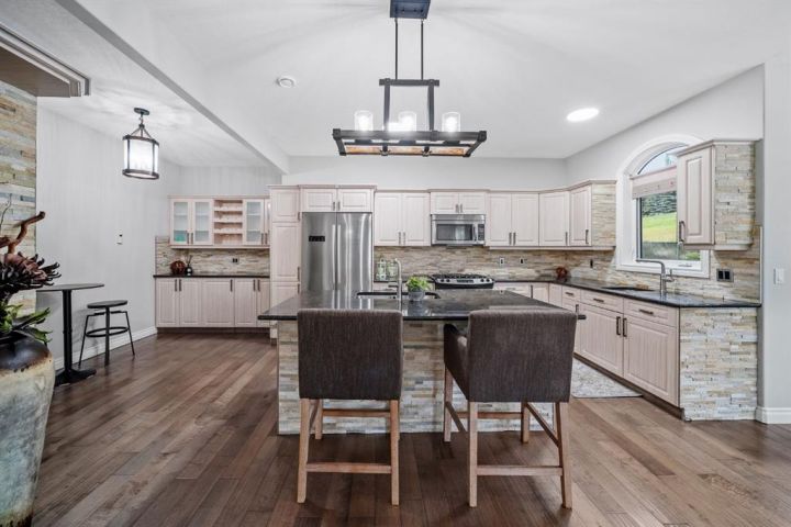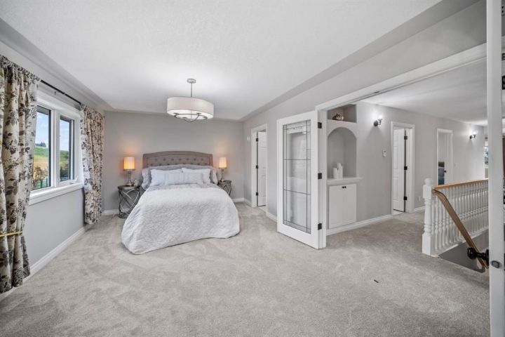In Gleneagles — one of Cochrane’s most adored communities — families choose this neighbourhood for the quiet streets, mountain views, and excellent school access. Glenbow Elementary, École Manachaban Middle School, and Cochrane High School (your designated catchment) are all close by, making daily life easy and connected for kids of all ages. Set against the backdrop of the Rockies, this move-in-ready home offers immediate possession and over 2,500 sq.ft. of refreshed, comfortable living. From the moment you arrive, the wide driveway, double garage, and sunny front balcony create a warm first impression — the kind that tells you there’s room here for family, guests, and life as it grows. Inside, everything feels new again. Fresh paint, brand-new carpet, hardwood floors, and updated fixtures give each room a clean and inviting feel. The main floor centres around a bright, functional kitchen with granite counters, a full-height stone backsplash, a large island with prep sink, and a custom bar nook that easily becomes the morning coffee spot or evening wind-down space. Oversized windows fill the main level with natural light, while the living room fireplace adds a sense of comfort that anchors the home. Step outside and the lifestyle expands. A private, two-tier deck overlooks mature landscaping and open green space, creating an ideal backdrop for BBQs, family gatherings, or quiet evenings outdoors. Kids will love the hidden park just beyond the yard — a safe, car-free shortcut to hours of play. Upstairs, a west-facing bonus room offers access to the front balcony, giving you sunrise coffees and sunset views over the valley. Four bedrooms complete the upper level, including a peaceful primary suite with French doors, a second fireplace, a jetted tub, dual sinks, and a walk-in shower. The lower level is ready for future plans with a framed bedroom, cold storage, rough-ins for a wet bar, additional laundry, and a roughed-in bathroom with the tub already installed. But the true standout is the comfort behind the walls. A whole-home boiler system provides in-floor heating across every level — even the garage — with 17 individual heating zones. The boiler, manifold, and automated controls were fully replaced in 2022, delivering even temperatures, warm floors, and noticeably lower monthly bills. A professional-grade HRV system keeps air fresh year-round, and the heated garage includes two plumbed floor drains tied to town sewer for effortless winter living. Surrounded by pathways, parks, and breathtaking views, this home brings together efficiency, warmth, and family-friendly living — all in one of Cochrane’s most scenic and school-rich neighbourhoods. It’s more than a house. It’s the beginning of a lifestyle that feels easy, elevated, and ready the moment you arrive.