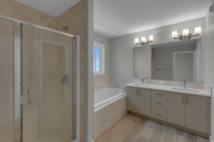 Uncover the charm of Lewisburg where residents will enjoy three neighborhood parks, convenient commercial spaces bringing everyday essentials close to home, and an extensive network of multi-use pathways connecting green spaces, recreational areas, and community amenities. A future town center will bring shopping, dining, and services into the heart of the community, while nearby schools make it an ideal place for families to grow. Just outside your front door, thoughtfully designed pathways lead to parks, natural spaces, and transit connections. With quick access to Stoney Trail and major routes, getting around the city, or out of it, is easy. Welcome to the COLLINGWOOD – a BRAND-NEW home built by Excel homes. This amazing family home has it all – it’s loaded with upgrades & offers FIVE BEDROOMS above grade. There is a SEPERATE entrance to the basement stairwell - and all the rough in's are in place for future LEGAL suite (with city permits and approvals)! This home offers over 2276 sf & is delivered in an open plan, designed for families & entertaining. Main floor boasts a spacious entry, ½ bath & MAIN FLOOR BEDROOM w/a full 4 piece bath. The impressive kitchen is open to the great room & dining nook. You’ll notice the back of the house is almost entirely windows (3 panel sliders in the family room), flooding this home w/natural daylight. Exit to your backyard thru the oversized patio doors. Your Impressive kitchen features an abundance of cabinets & drawers, SS appliances including a gas range. You’ll love the large island, stone counter tops, pot lighting. Enjoy the luxury of an additional SPICE KITCHEN for all your culinary adventures. The family room & dining area are connected & offer huge family / entertaining potential. 9’ KNOCKDOWN ceilings & gorgeous luxury vinyl plank flooring make this space airy & bright. Upstairs you’ll find FOUR spacious bedrooms! The primary suite is separated from the 3 others by a huge bonus room that offers vaulted ceilings & pot lighting. The primary suite also features a spa like ensuite & walk in closet. Your laundry room & family bathroom complete this level. THE BASEMENT is partially developed (drywall, electrical & all rough ins) has all the rough in's for a future 2 bedrooms suite (subject to city permits & approvals)... & has a PRIVATE / SEPARATE side entry; perfect for rental income, extended family or a live-in nanny! Additional extras incl a gas line to BBQ, all counter tops are engineered stone, Smart Home Essentials like Ring Doorbell, wi-fi garage door opener, thermostat & numerous USB ports! This is a BUILT GREEN home with all the cost-saving features that make Excel Homes a wise choice !