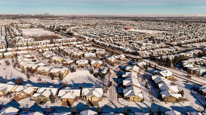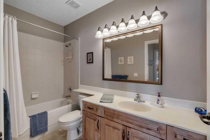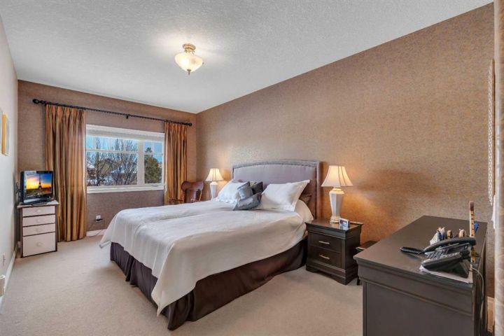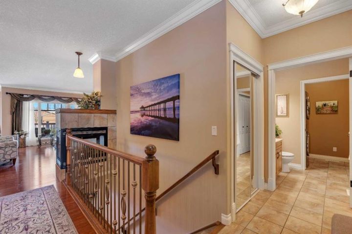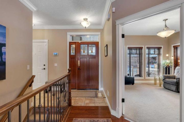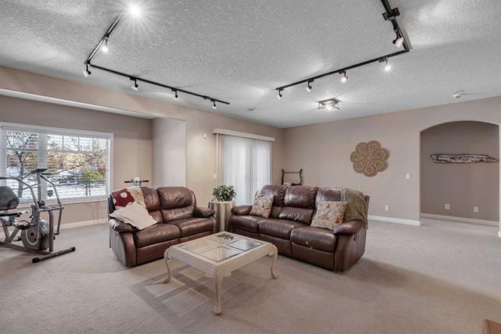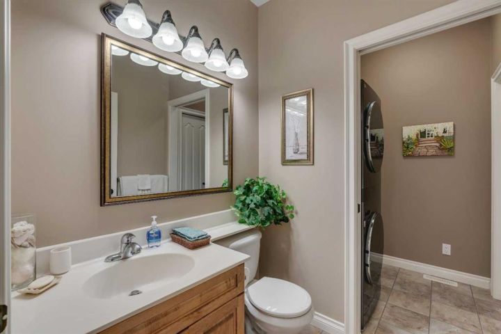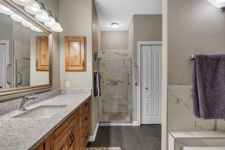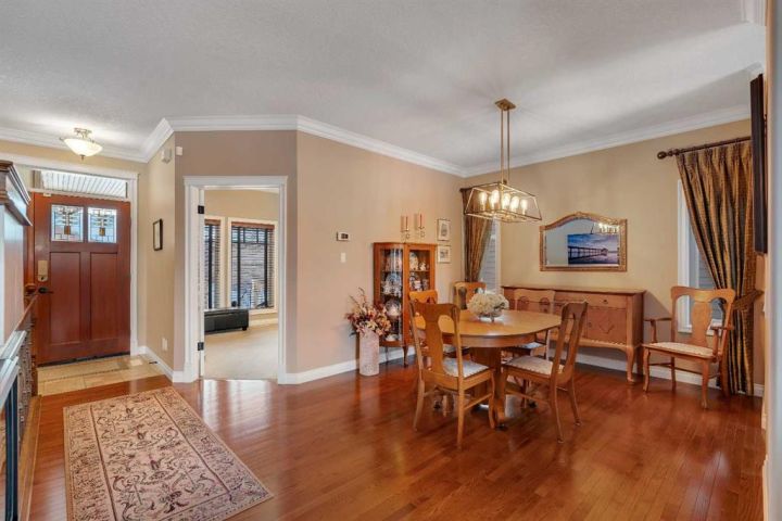 RARE OPPORTUNITY to own this immaculate 55+ walkout bungalow-style villa backing directly onto greenspace—with no neighbours behind! Tucked into one of the best locations in the community, this home is ideal for empty nesters and downsizers seeking a low-maintenance lifestyle without sacrificing space or comfort. From the moment you step inside, you’ll notice the executive upgrades including 9’ ceilings, custom crown moulding, and hardwood flooring throughout the main level. The layout is bright and functional with a spacious tiled front entry, a front den/office with large windows, and a formal dining area perfect for hosting. The kitchen offers granite countertops, corner pantry, an updated tile backsplash, and newer stainless-steel appliances including a fridge with water and ice, dishwasher, and microwave hood fan. The adjacent eating nook showcases unobstructed greenspace views and leads to the deck—a perfect spot for morning coffee or quiet evenings outdoors. The living room is warm and inviting and includes a three-way fireplace. The primary suite is a great size and features a walk-in closet and a beautifully updated ensuite with heated floors, a tiled shower and Jacuzzi tub. The main level is complete with a powder room and convenient laundry with new washer and dryer (2024). Downstairs, the walkout lower level expands your living space with a large family room featuring a gas fireplace, built-ins, a spacious additional bedroom, and a full bathroom. There’s also a versatile room that is ideal for an office, hobby space, rec room, or potentially an additional bedroom plus plenty of storage. Additional highlights include air conditioning, and a central vacuum system. Best of all: no condo fees—just a low $180 HOA fee covering lawn care, snow removal, and irrigation, making this an ideal turn-key option for those looking to simplify and enjoy life. With easy access to Stoney Trail, shopping and amenities this move in ready villa is not to be missed!