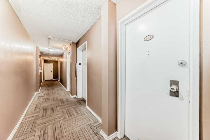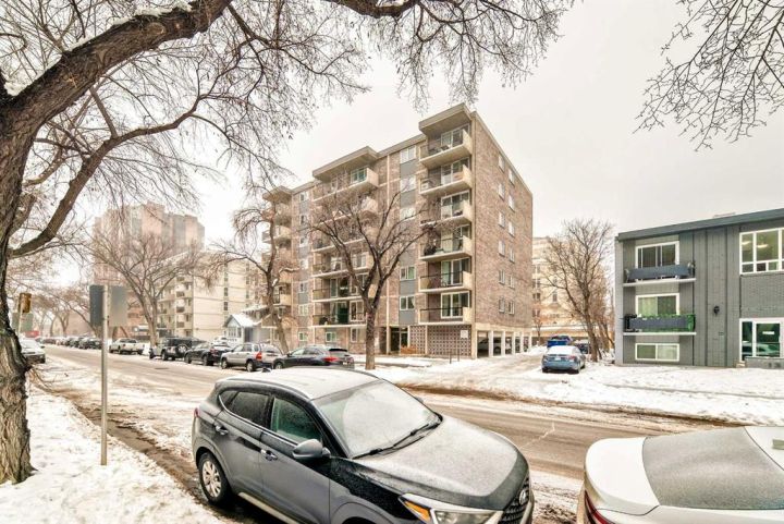 Concrete building walking distance to all aminities. 17th Ave trendy restaurants and shops. Parks and LRT near by. Walk to work. Very few unit come with covered parking this unit has one. Three sides closed. Ecellent opportunity for first time buyer of investor. Very quite street with good access to suth or north via 14th street.