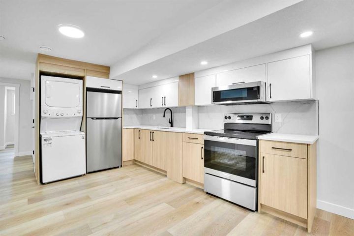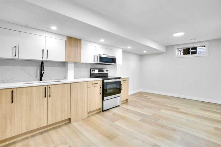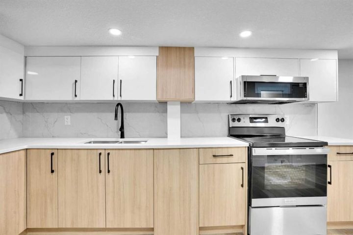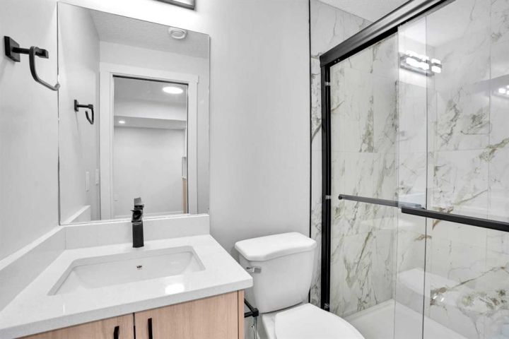 Welcome to this beautifully renovated two-storey detached home located in the highly desirable community of Falconridge in NE Calgary. This stunning property offers 4 bedrooms, 2 full + 2 half bathrooms, a double detached garage, brand new appliances, brand new windows, siding, soffit, fascia, gutters, pluming and garage roof. An unbeatable location—just a 2-minute walk to St. John XXIII School and close to all major amenities. As you enter, you’re greeted by a spacious foyer that leads into a bright and inviting living room, highlighted by large windows that fill the space with natural light and a stylish feature wall that elevates the ambiance. The modern kitchen at the rear of the home showcases quartz countertops, stainless steel appliances, and overlooks both the dining area and the living room. A large patio door provides seamless access to the backyard and adds an elegant touch to the dining space. A stacked laundry closet and 2-pc powder room complete the main floor. Upstairs, you will find a generous primary bedroom with ample closet space and a private 2-pc ensuite. Two additional well-sized bedrooms and a beautifully upgraded 4-pc main bathroom complete the level. Plush, upgraded carpet throughout the upper floor adds warmth and comfort. The fully finished basement (illegal suite) with a separate side entrance offers excellent additional living space. It features 1 bedroom, 1 full bathroom, a cozy rec room, and a sleek modern kitchen with stainless steel appliances—perfect for extended family or potential rental use. This home is truly a complete package, offering modern finishes, functional design, and an exceptional location. This gem won’t last long—book your private showing today!