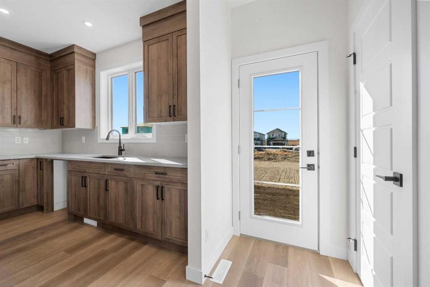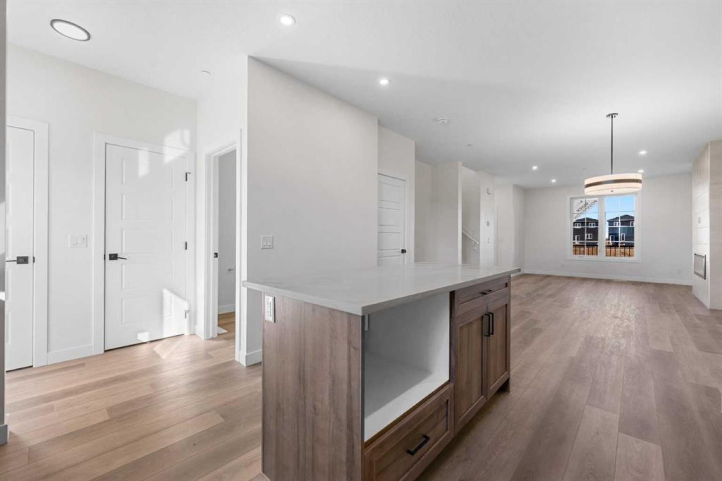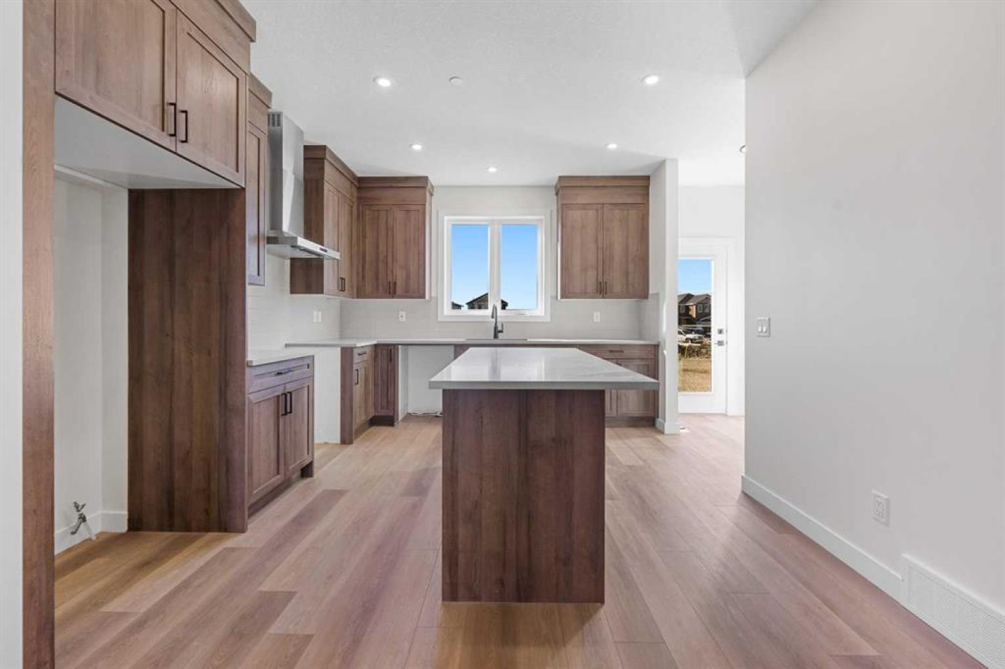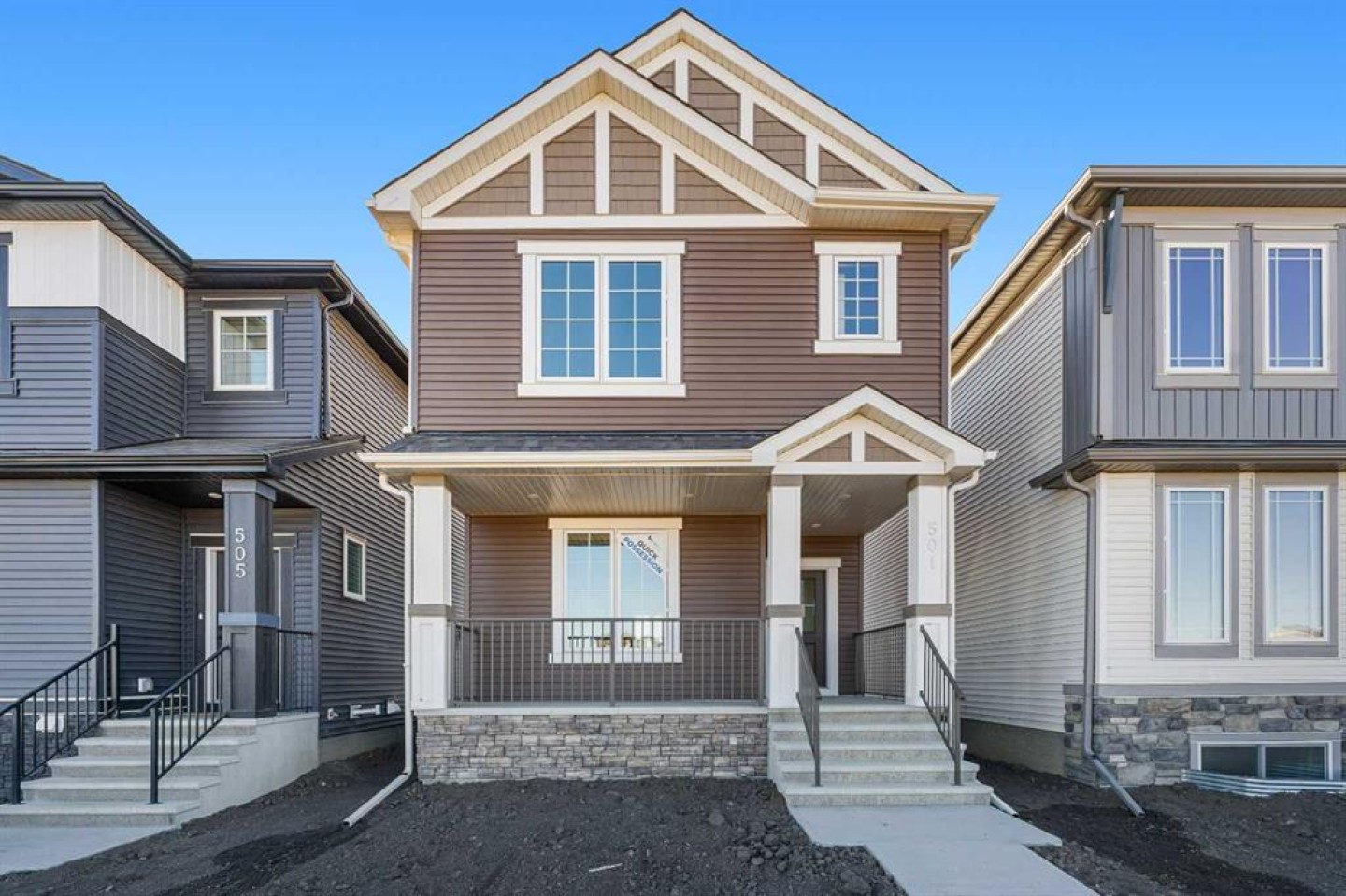 Welcome to this beautifully crafted, move-in ready 2025-built home by Broadview Homes, offering 1,677 sq ft of thoughtfully designed living space. Situated on an east-facing lot with a sunny west-facing backyard and convenient rear lane access with a gravel parking pad, this home combines style, comfort, and functionality. The main level features an open-concept floor plan with high ceilings, an elegant electric fireplace, granite countertops throughout, full-height cabinets, and a modern kitchen complete with a stainless steel gas range, hood fan, and built-in microwave. Upstairs offers 3 spacious bedrooms, 2.5 bathrooms, and a convenient upper-floor laundry room. Enjoy additional upgrades including a 200 AMP electrical panel, precast front verandah, and 9' basement ceilings. The basement is legal suite-ready, with a separate side entrance, second furnace and HRV system, kitchen rough-in, and laundry rough-in – all subject to City of Calgary approval. This is a fantastic opportunity to own a brand-new, luxury home with incredible future income potential in a growing community.