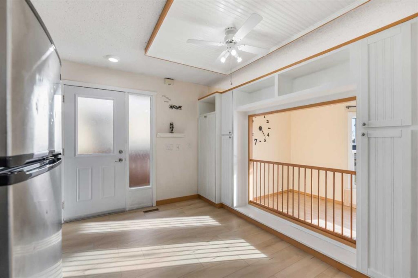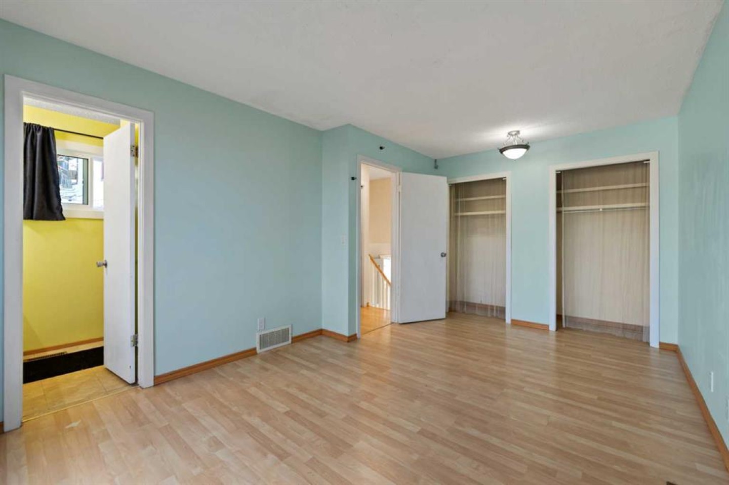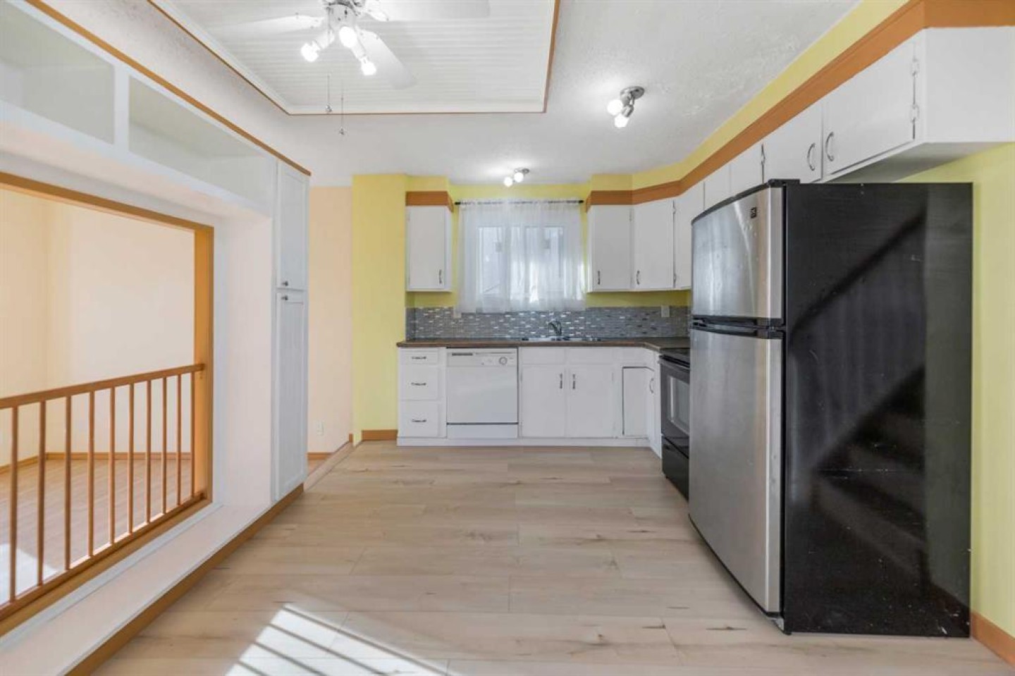 Welcome to this beautifully maintained four-level split, Nestled in a family friendly community, you will be just steps away from 2 public schools, dog park and playgrounds, thoughtfully upgraded and truly move-in ready. Recent improvements include a few new windows, new flooring in the kitchen area, new paint,—offering peace of mind for years to come. The main level showcases a sun-filled, south-facing living room accented by an elegant bay window, seamlessly flowing into the well-appointed kitchen and adjacent dining area—ideal for both everyday living and entertaining. The upper level is highlighted by a generous primary retreat featuring his-and-hers closets, a four-piece ensuite, and patio doors opening to a private deck, perfect for morning coffee or evening relaxation. Two additional bedrooms and a full bathroom are located on the lower level, providing excellent flexibility for family, guests, or a home office. The basement completes the home with a comfortable recreation room, along with dedicated mechanical, laundry, and storage spaces. Additional comforts include central air conditioning. Ideally situated within walking distance to Falconridge Elementary School, Terry Fox Junior High School, transit, and shopping, this home offers both convenience and lifestyle in a well-established community.